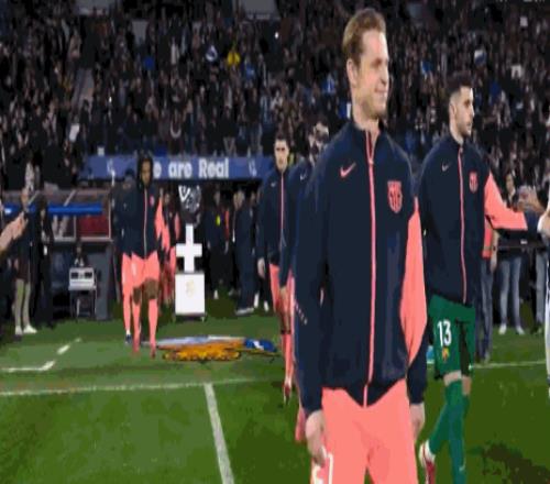巴萨球员入场,皇社球员列队欢迎西超杯冠军得主